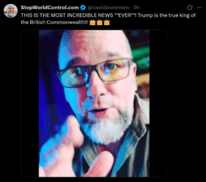 David Sorensen on X ~ Trump is the True King September 19, 2025 by Suzanne Maresca Click the image above to watch… David’s confidence and passion are such a boost of positivity right now…and we all could use a bump like that. Share this: Click to share on ⠀Truth Social (Opens in new window) ⠀Truth Social Click to share on Facebook (Opens in new window) Facebook Click to share on Reddit (Opens in new window) Reddit Click to share on X (Opens in new window) X Click to email a link to a friend (Opens in new window) Email