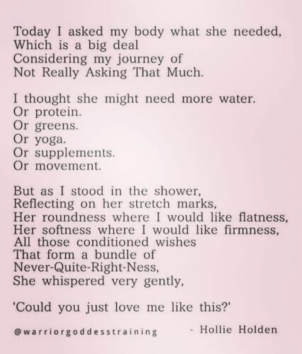 Good morning my dear friends! To continue our conversation yesterday about the body….I am realizing now just how much the Ego has “outvoted” the body over all these years.