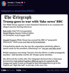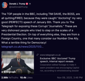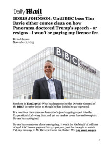 When the dust settles, will the British Broadcasting Company still be a thing? In the end, this feels like the BBC stepping on a landmine of its own making ~ arrogance meets accountability in the social media age. It’s not all that different from PBS in the US… Publicly funded media outlets have no business expressing political views and bias.
