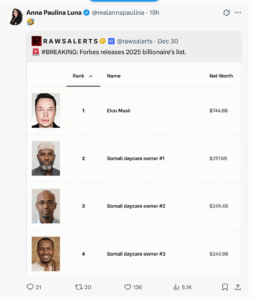 Elon Musk, Telegram, Dec. 31, 2025