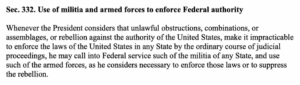 Section 334 requires the president issue proclamation ordering insurgents to “disperse and retire peaceably to their abodes” before deploying military force. That’s the legal tripwire. Once issued, if obstruction persists after the compliance window closes, federal troops can enforce federal law.