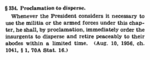 Section 334 of the Insurrection Act mandates the president issue a proclamation ordering insurgents to disperse before deploying military force.
