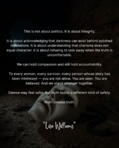 Power is being questioned, and truths that were hidden for years are being brought into the light. Influence and reputation should never be mistaken for character.